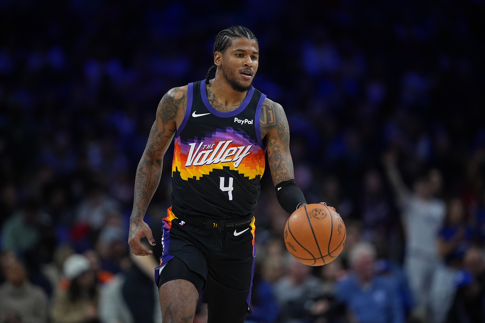 赛后,布克在接受采访时谈到了本场迎来复出的杰伦·格林:“我为他感到兴奋。他一直与我们并肩作战,我们见证了他一路的努力。在我看来,他的表现非常出色。他速度很快,能够为队友创造机会,并且在内线为我们增添了新的力量。他的速度确实很突出。”